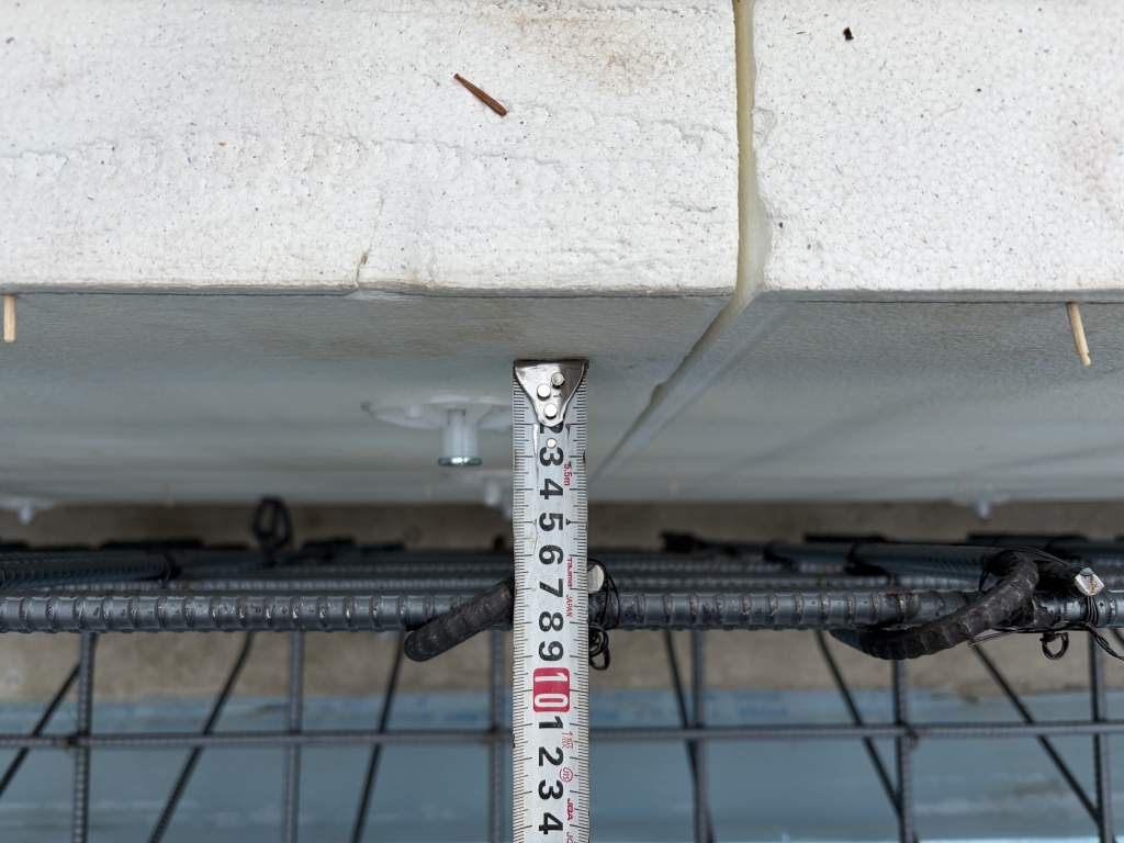 現場は、いつもながら整然としており、施工も非常に丁寧です。検査の結果、すべて問題なく「適合」となりました。設計検査では、断熱材の厚さや種類、鉄筋の径・間隔・被り厚さ・継手長さなど、基礎性能に関わる重要なポイントを細かく確認しています。その後、瑕疵担保保険の建築士検査員による検査も実施され、こちらも指摘事項はなく、無事に適合判定をいただきました。