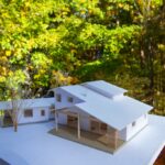 場所は、長野県軽井沢町。歴史ある別荘地の一角、平坦な場所において、縁あって別荘の設計を行いました。この敷地は、苔が美しく地面を覆っており、その周辺には美しい大きなモミジやツツジもあることから、その周辺には建築をつくらず、道路から少し奥まった位置に、場所を決めて設計に着手しました。道路から奥まっているとはいえ、遠目に見ても、周辺環境に溶け込み、美しく佇むような屋根の形態と家の形態を決めながら、計画をまとめていきました。隣地の配置も周辺に配慮しておる素晴らしいエリアであることから、それぞれの庭が双方で借景になると感じ、そのことも意識しました。軽井沢らしい森の中で滞在することで、心身が良くなるとともに、この家が、軽井沢の環境に寄与する、そんな存在になって欲しいという願いを込め、本プロジェクトを「森澄居」(シンチョウキョ)と名付けることとしました。